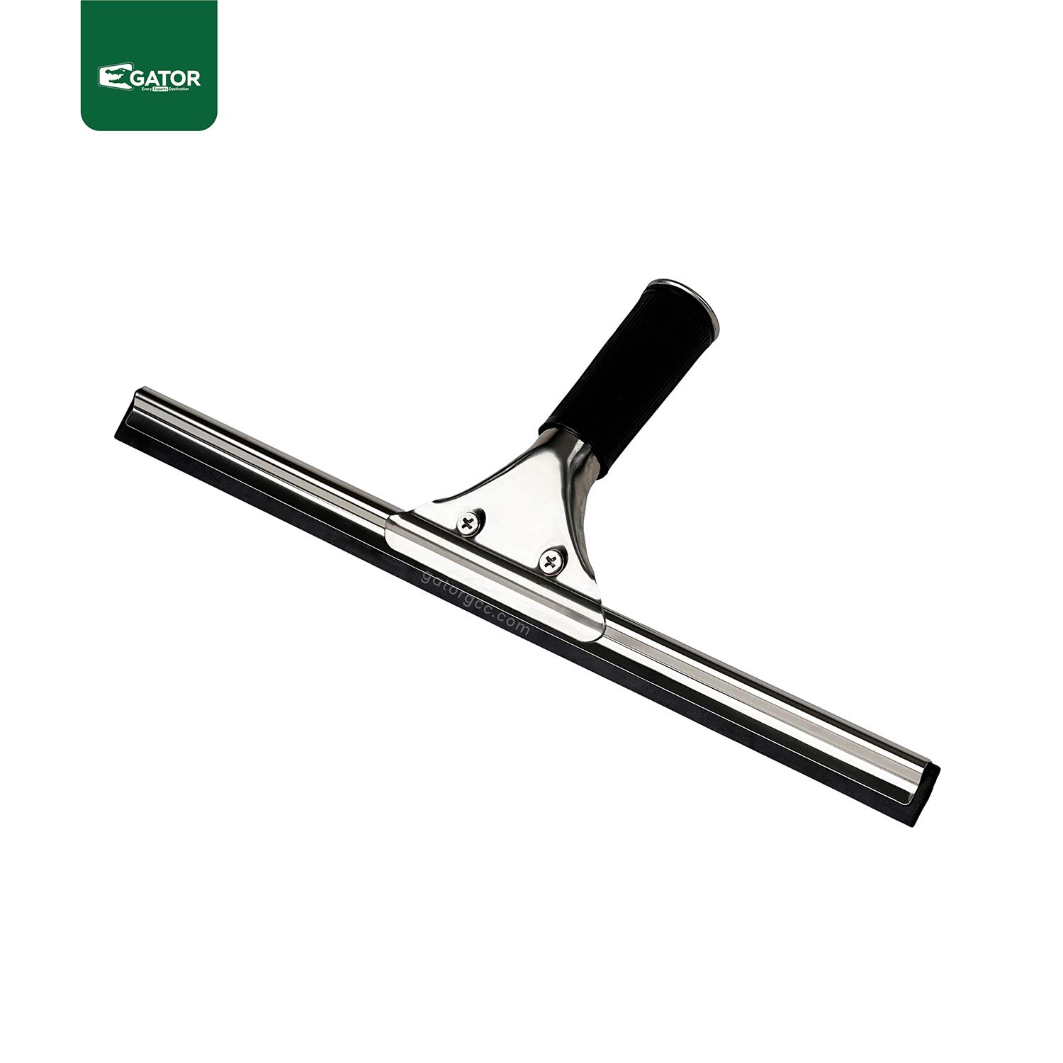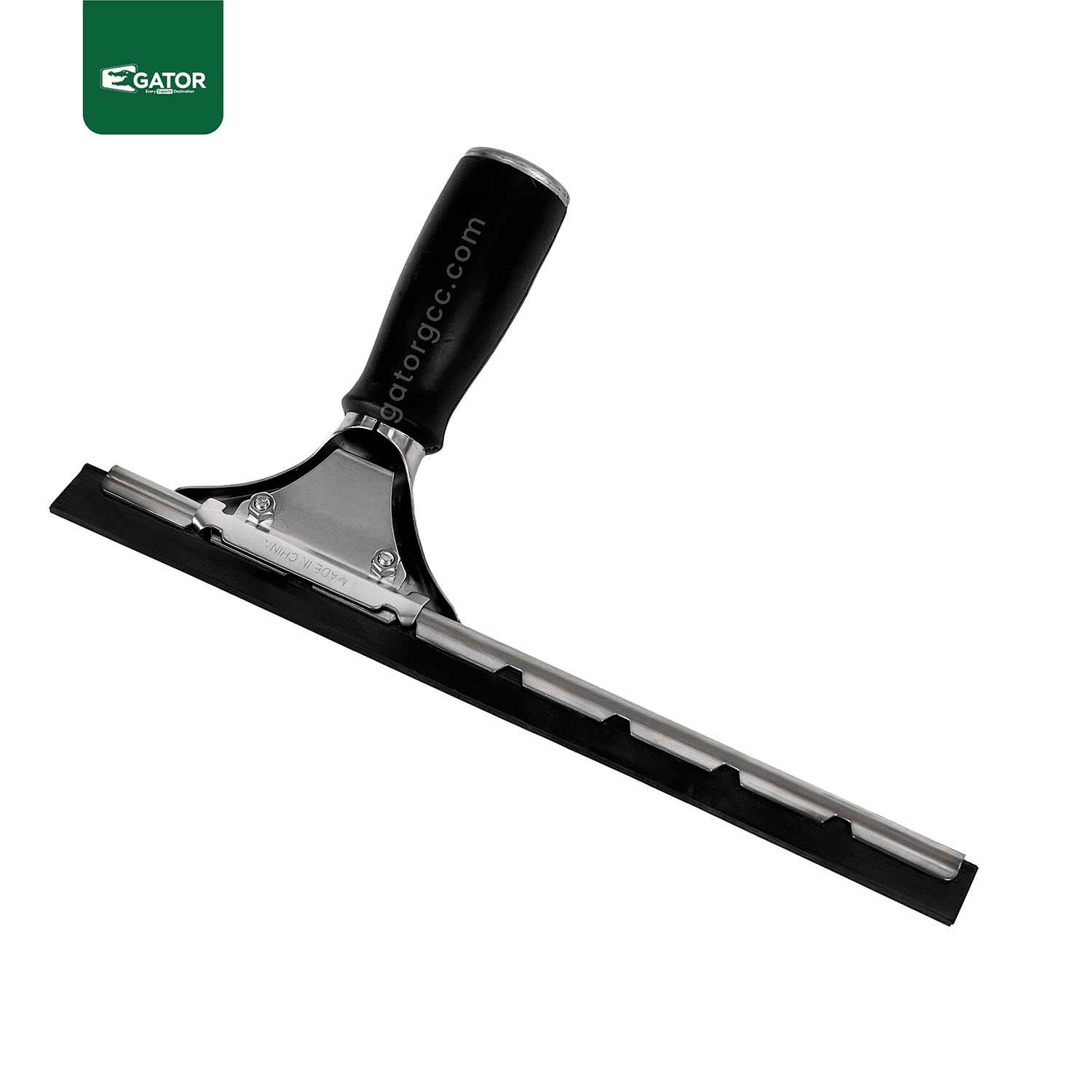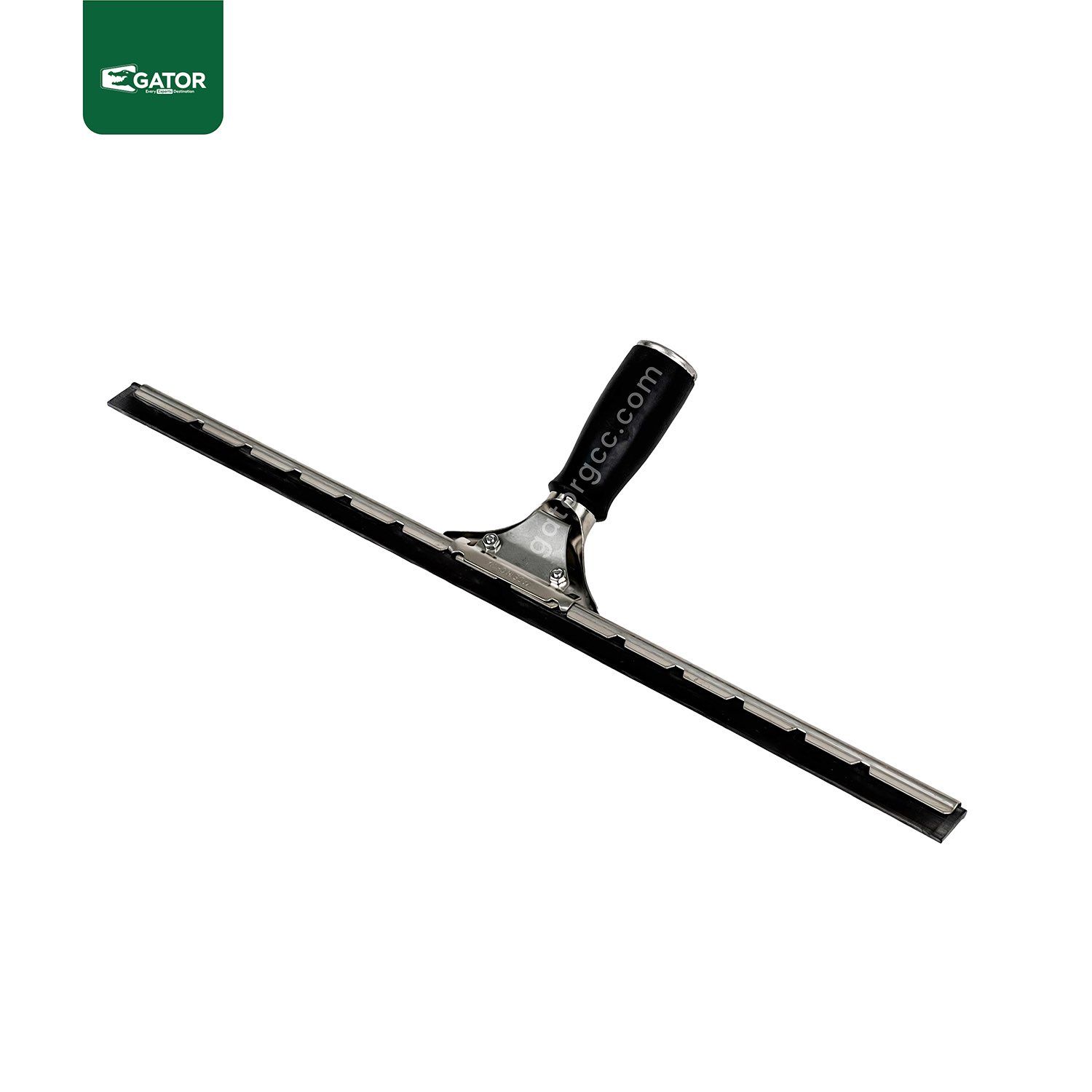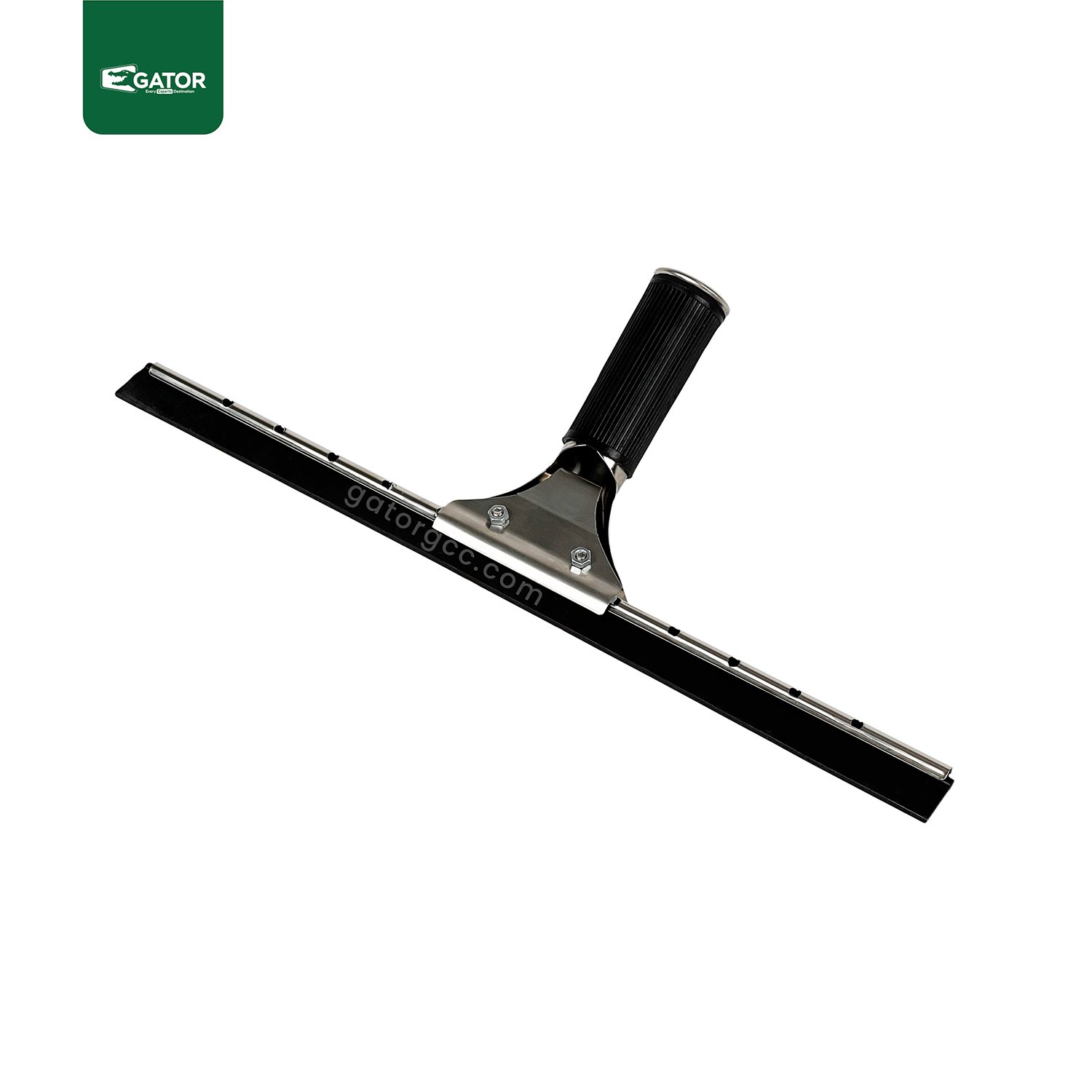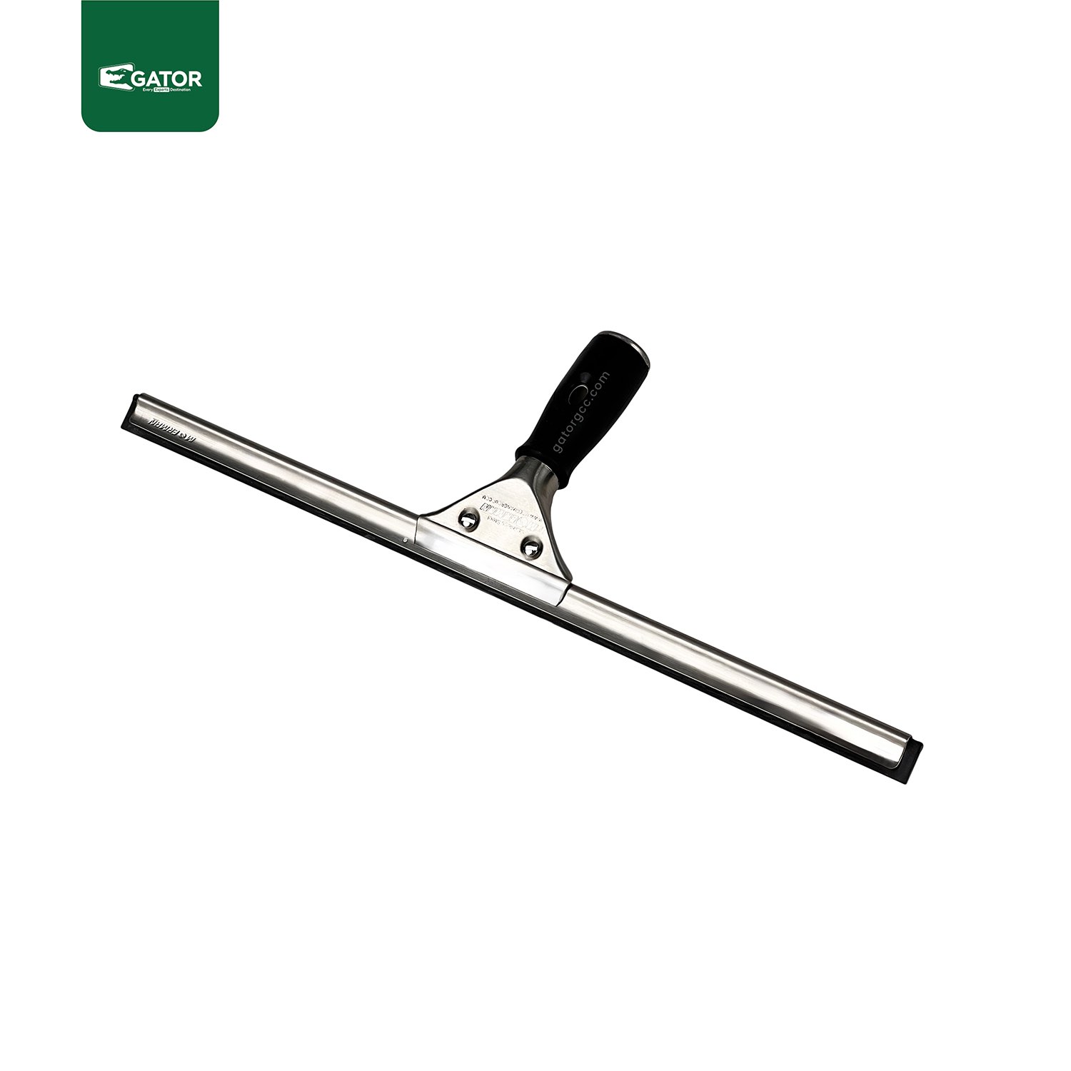 WG18 – 40cm glass squeegee with rubber blade, usable by hand or with extension pole. Durable, ergonomic, ideal for high/low cleaning.