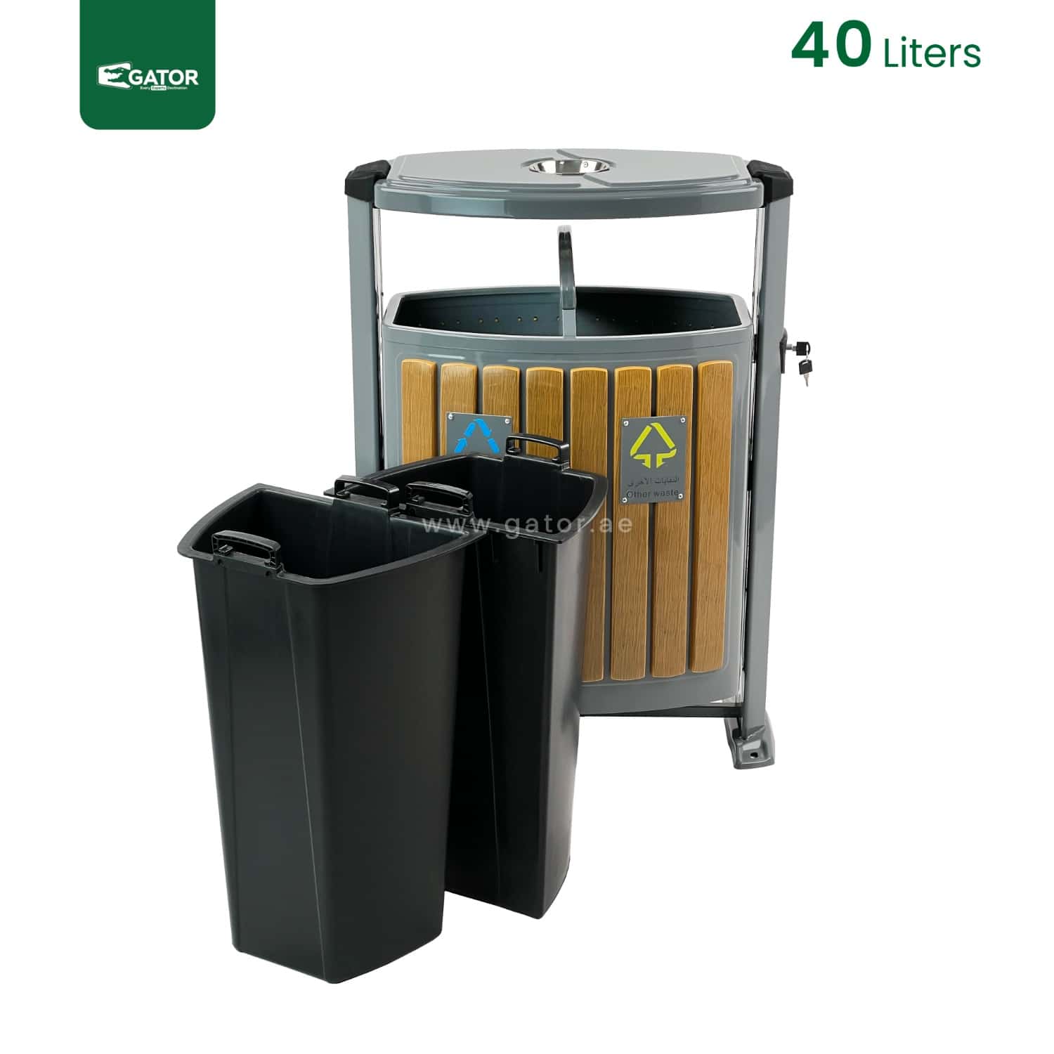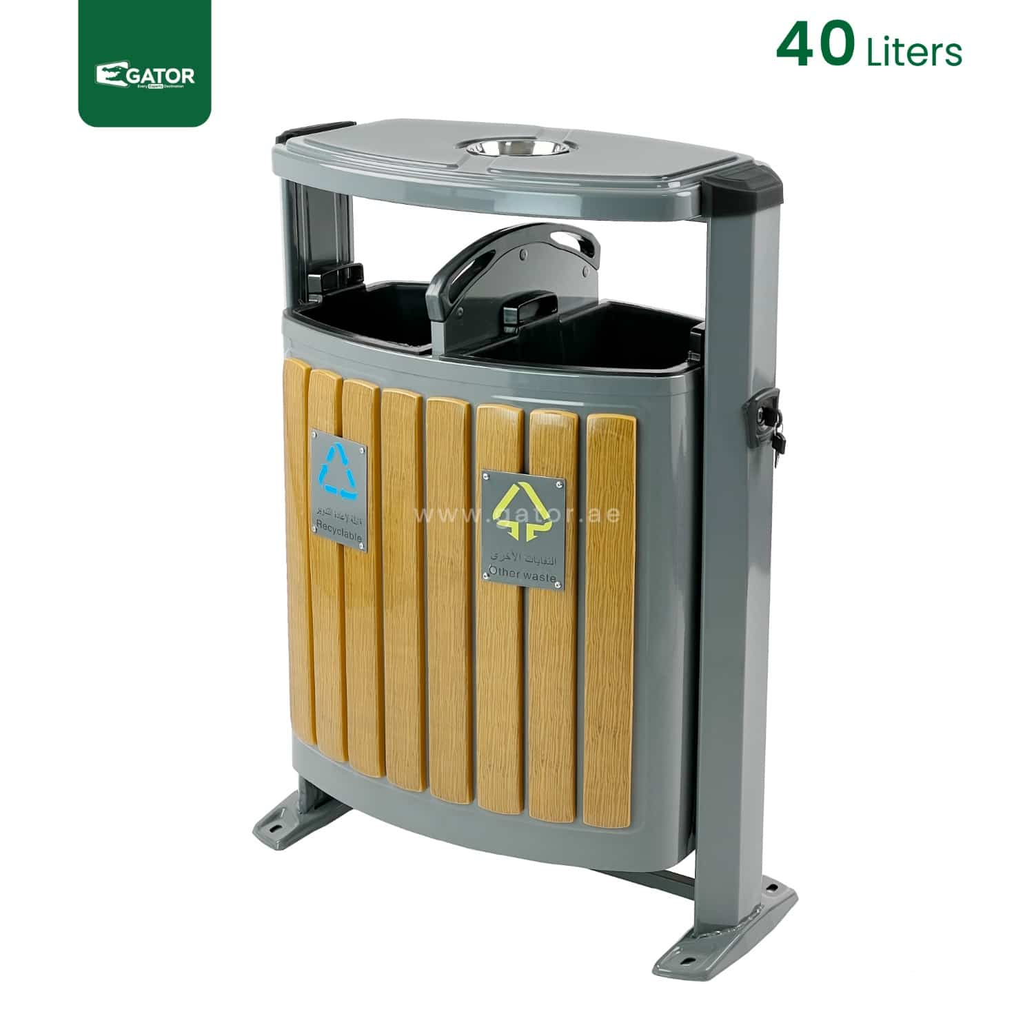 Premium Wood-Panel Outdoor Recycling Station with Ashtray | Dual 20L Compartments Description: The RB06 dual-compartment recycling bin combines functionality with aesthetic appeal, featuring durable wood-panel finishing and integrated ashtray. Each 20L compartment is clearly marked with recycling symbols, making waste separation intuitive. The galvanized inner containers ensure longevity and easy maintenance. Dimension : 41W × … Read more