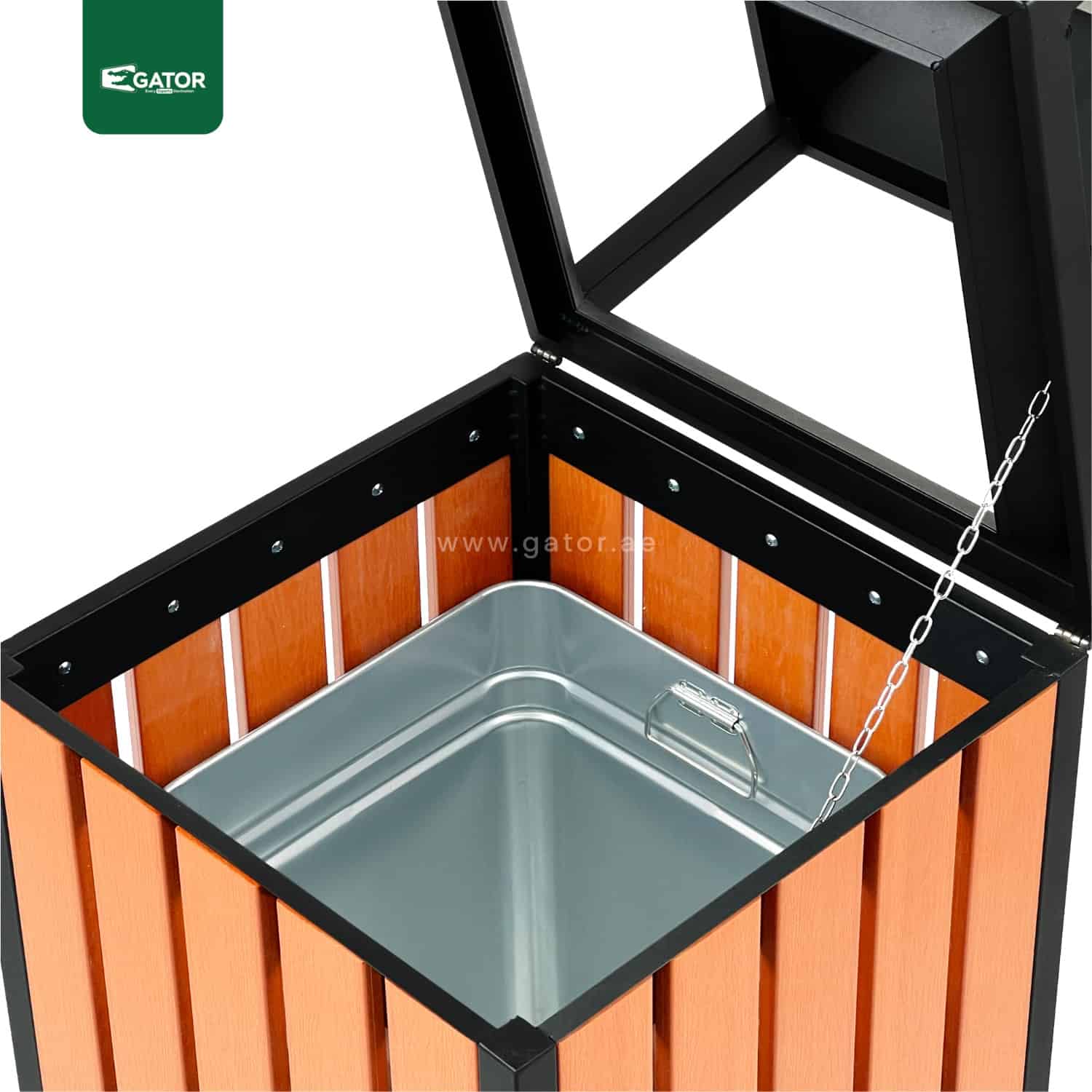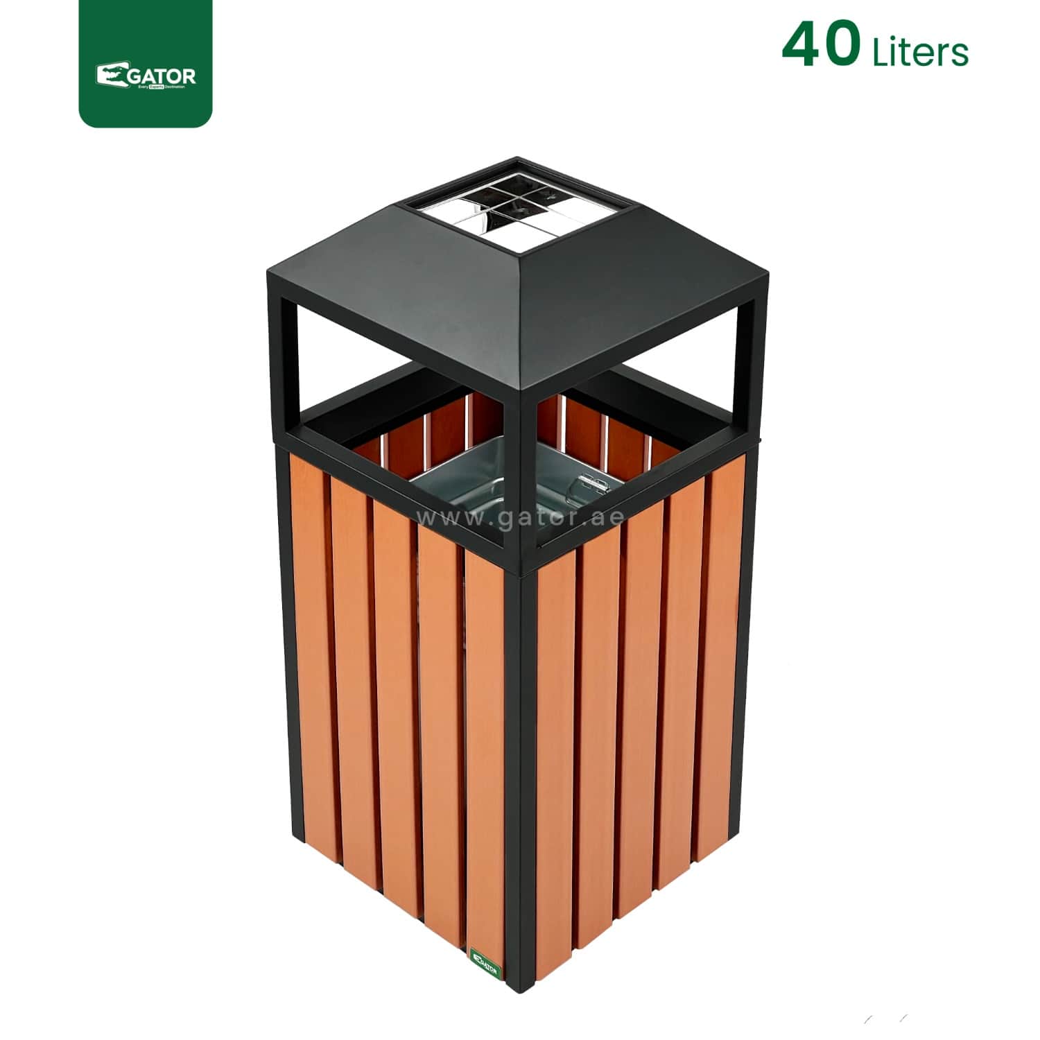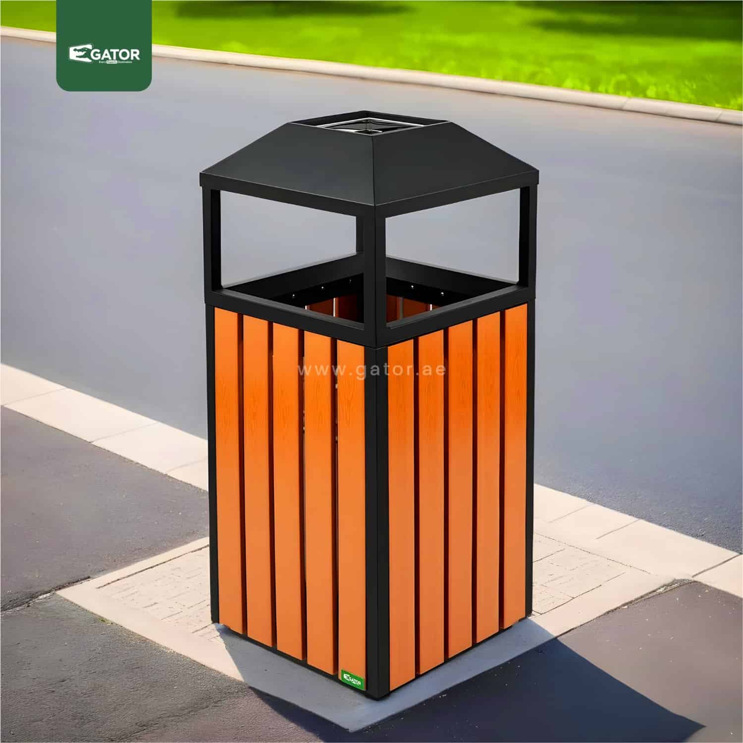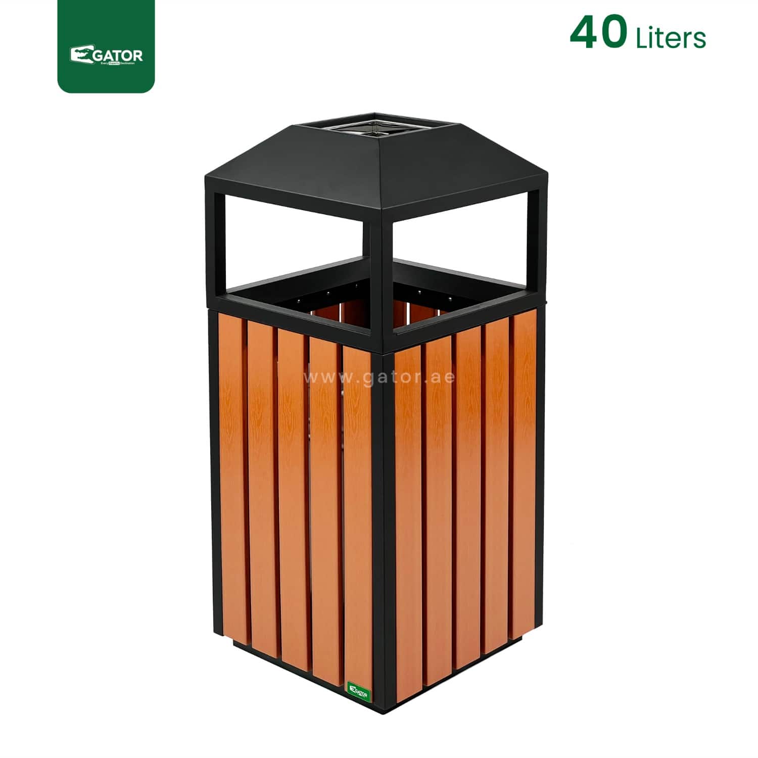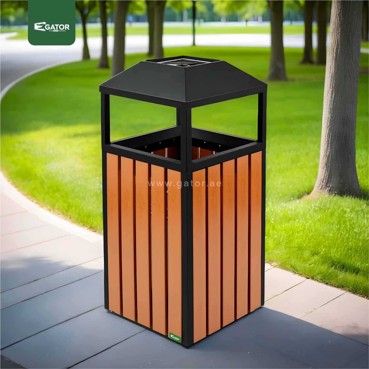 Ashtray Outdoor Metal with Plastic Wood Bar | 40 LTRS Contemporary square waste bin featuring protective roof design and wood-effect panels. Combines style with functionality through its covered top design and spacious interior. Weather-protected construction ensures durability in outdoor environments. Specifications: Capacity: 40 Liters Dimensions: 40W × 93H × 40L Material: Metal with plastic wood … Read more