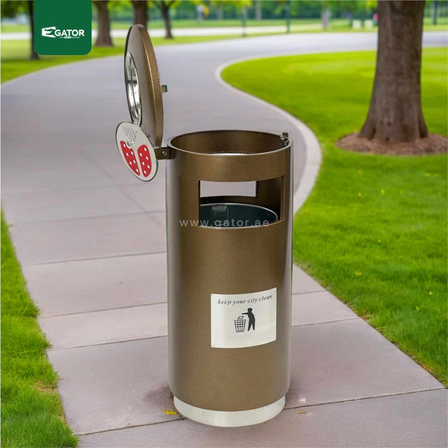 Fire-safe ashtray bins UAE for designated smoking areas. Features include sand-filled designs and weather protection.Perfect for:Office buildings,Hotels,Shopping centers,Outdoor spaces.Complete with outdoor bins and cleaning supplies.