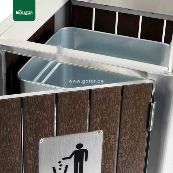 Outdoor Ashtray Bin Stainless Steel 50 L Professional outdoor waste bin with integrated ashtray and protective canopy design. Features a durable vertical panel construction with sleek silver frame and dark wood-look panels. Includes secure locking door and clear waste disposal signage. Galvanized inner container ensures easy maintenance and waste management. Specifications: Capacity: 50 Liters Dimensions: … Read more